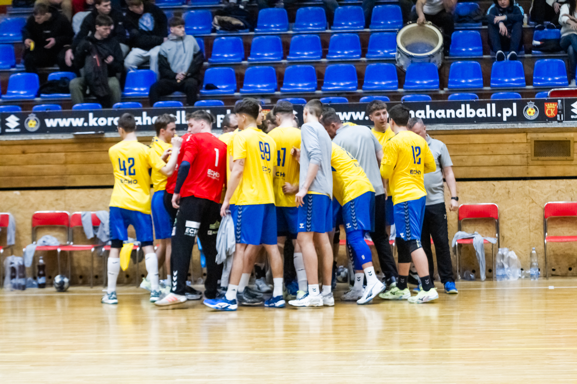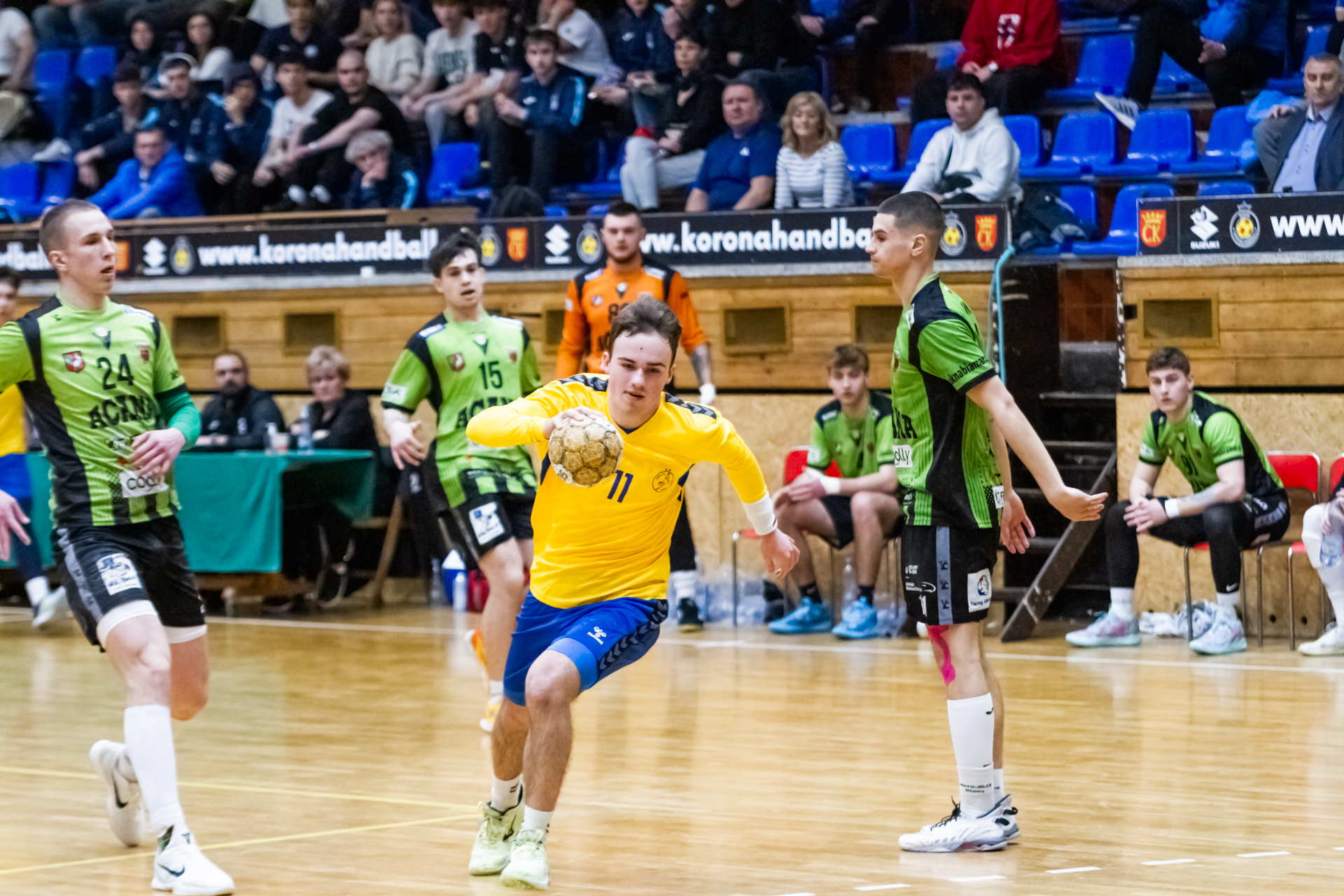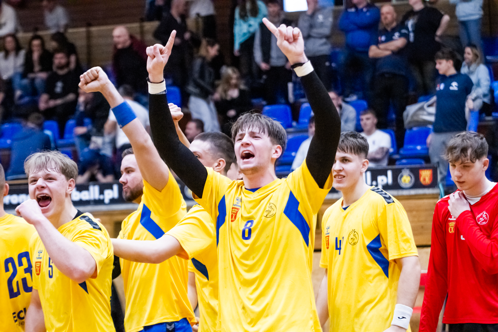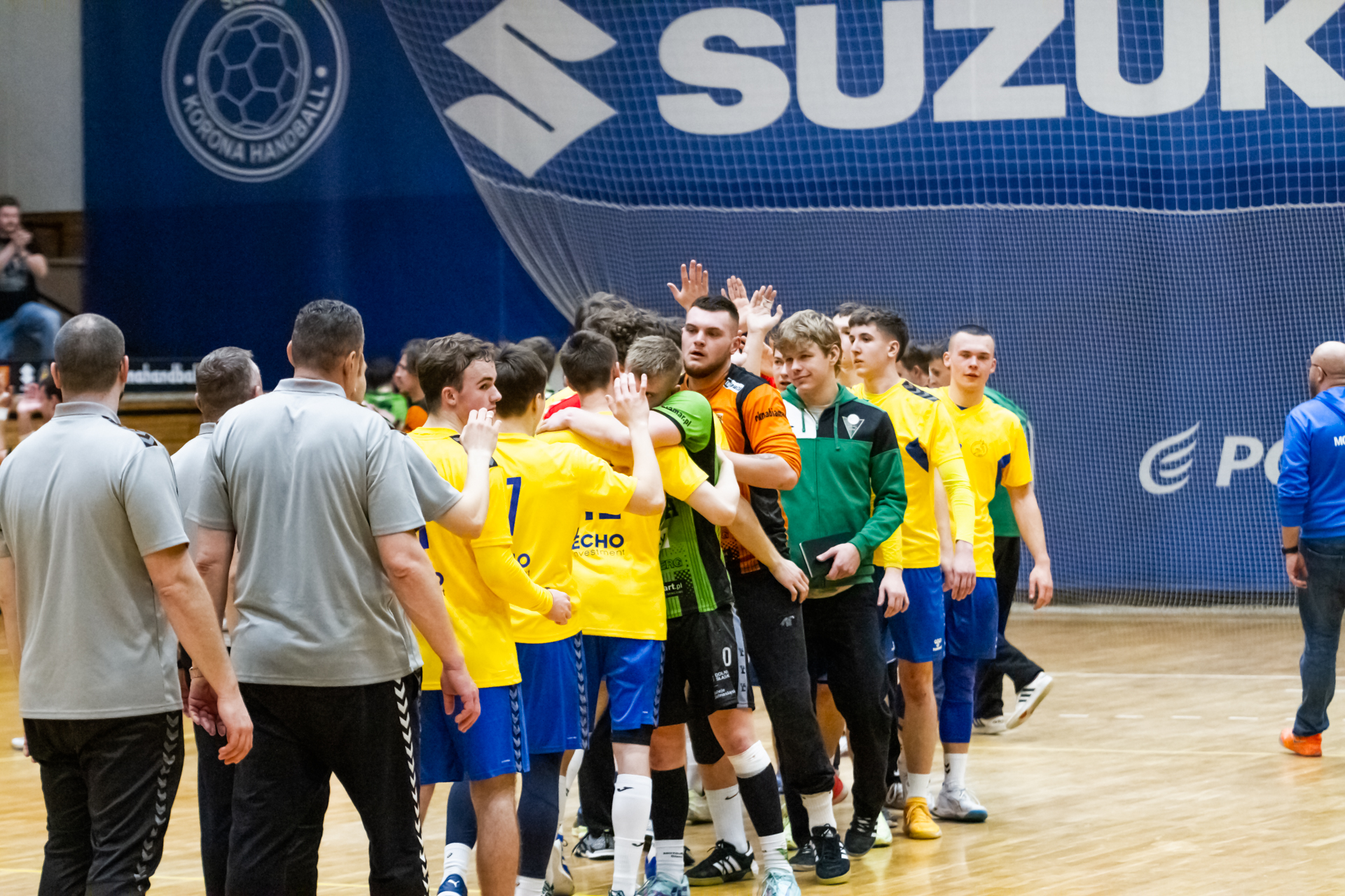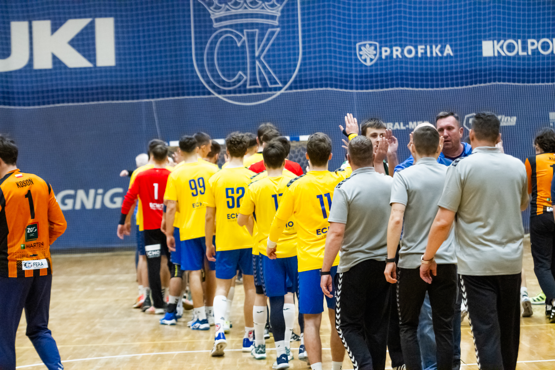 Pierwsze minuty spotkania z zawodnikami z Tarnowa pokazały, że nasza drużyna wyszła bardzo dobrze zmotywowana z szatni. Dwie pierwsze bramki dla naszego zespołu padły z rąk Jakuba Janusa. W siódmej minucie prowadziliśmy już 6:2. Przeciwnicy jednak szybko odrobili straty (7:6 w 12 minucie). Nasza gra mogła się bardzo podobać kibicom, którzy ponownie licznie się zgromadzili na trybunach. Młodsi zawodnicy Iskry wspierali starszych kolegów głośno dopingując przy akompaniamencie bębnów i trąbek, a także okrzyków członków rodzin i przyjaciół – po prostu wiernych kibiców żółto-biało-niebieskich, którzy w ten weekend postanowili zawitać na halę przy ul. Krakowskiej. Kulminacyjny moment meczu przyszedł w 22 minucie, kiedy to odskoczyliśmy na kilka oczek po udanych wykończeniach akcji rzutowych Marcela Latosińskiego, Janka Marca, Kuby Osucha i Kacpra Radka. Druga odsłona to konsekwentne powiększanie naszej przewagi, która na koniec spotkania dobrnęła aż do 8 bramek. Tarnowianie tego dnia musieli uznać wyższość naszych juniorów, dla których było to już drugie zwycięstwo w turnieju. Niestety na radość z awansu było jeszcze za wcześnie ponieważ w drugim pojedynku oławianie pokonali płocczan 36:28 (16:11) i o tym, kto awansuje do kolejnej rundy Mistrzostw zadecydować miały niedzielne spotkania.