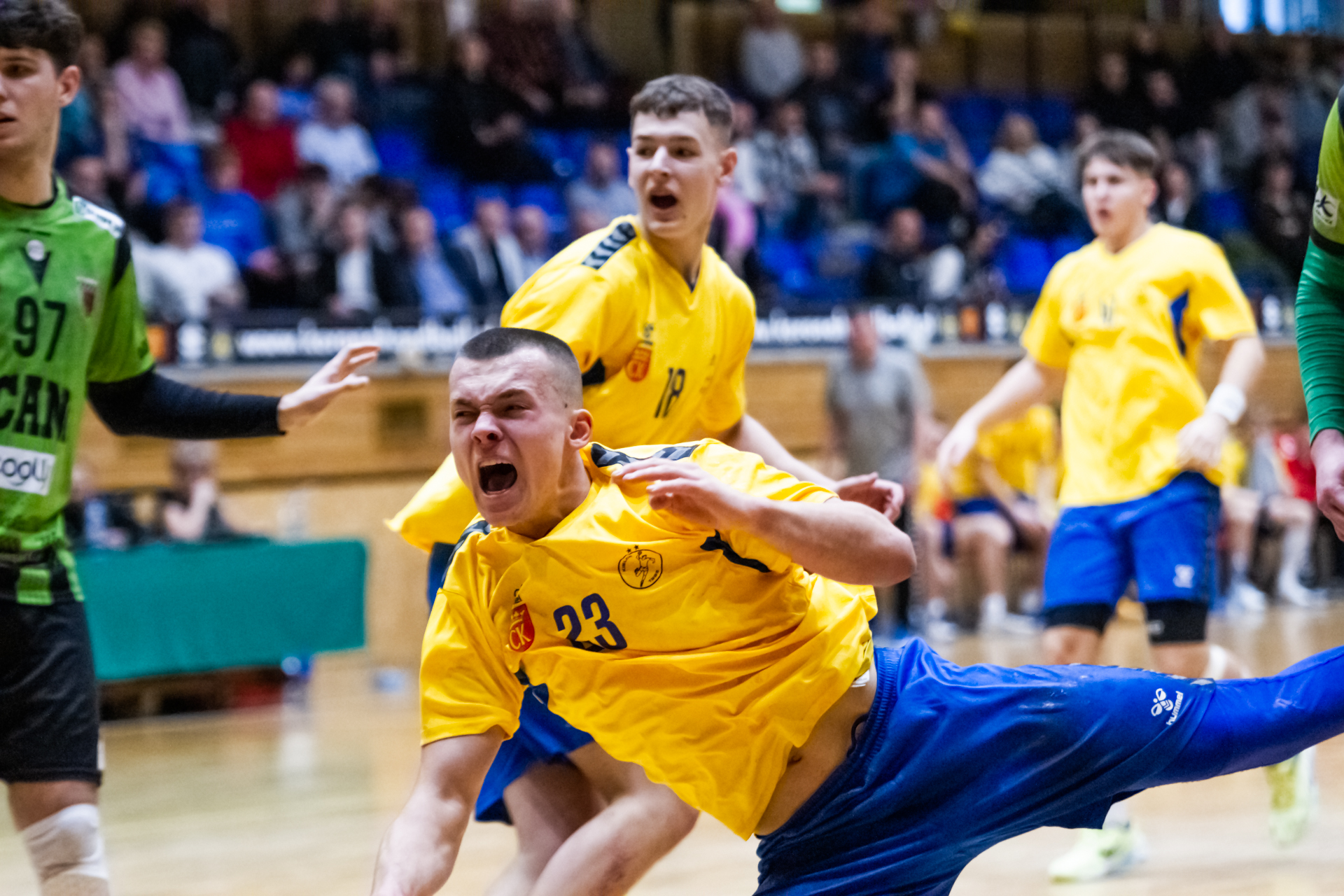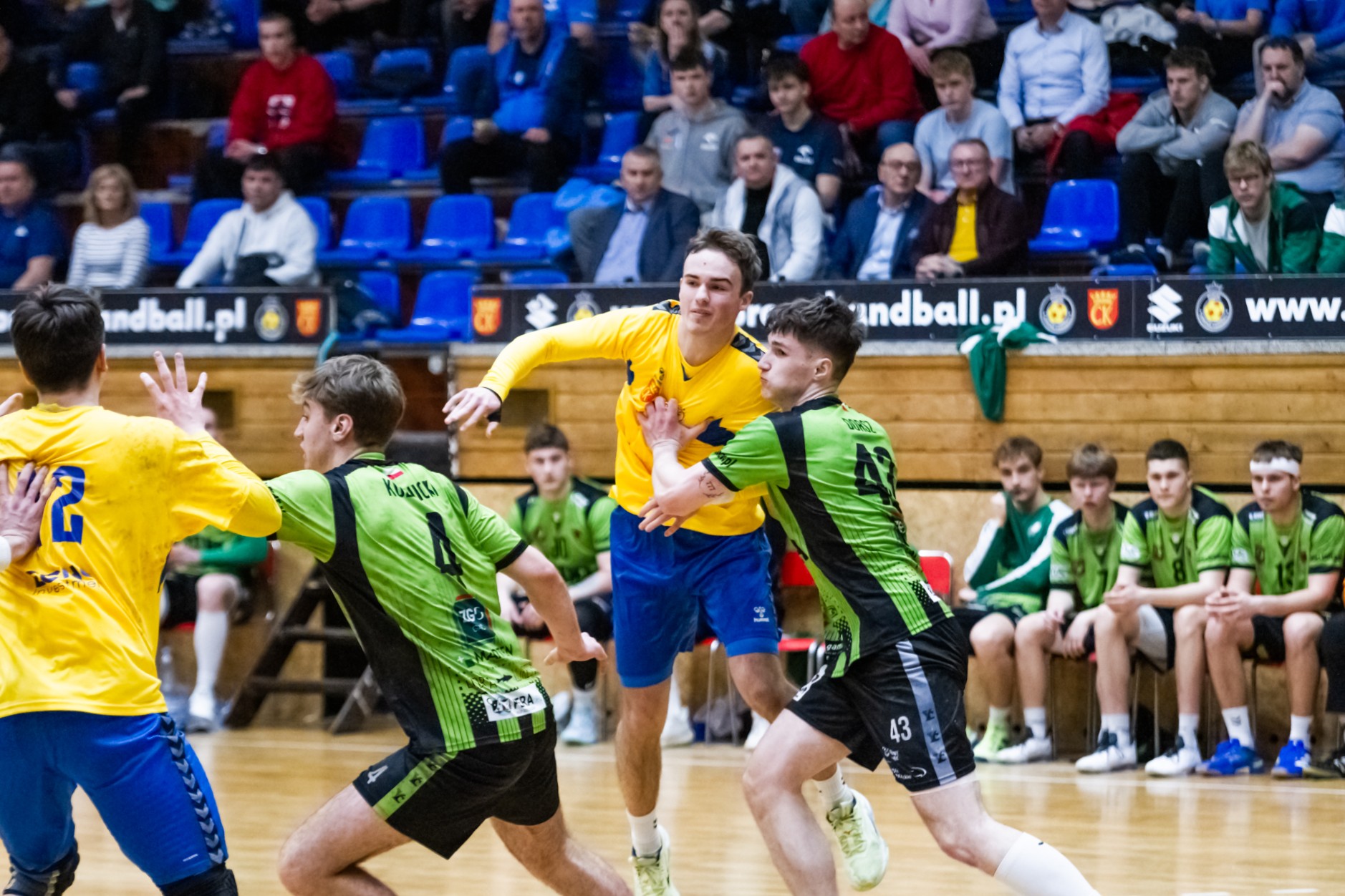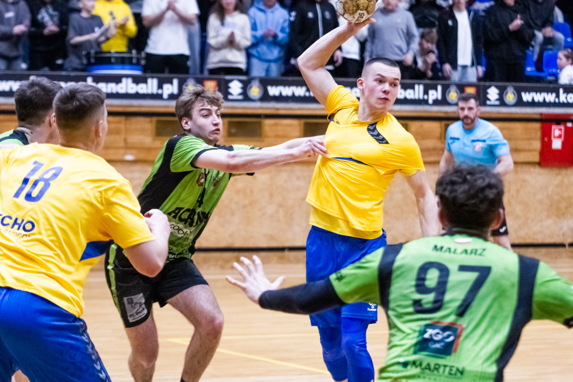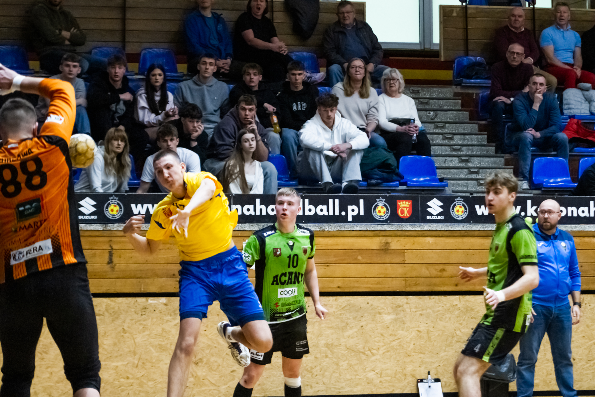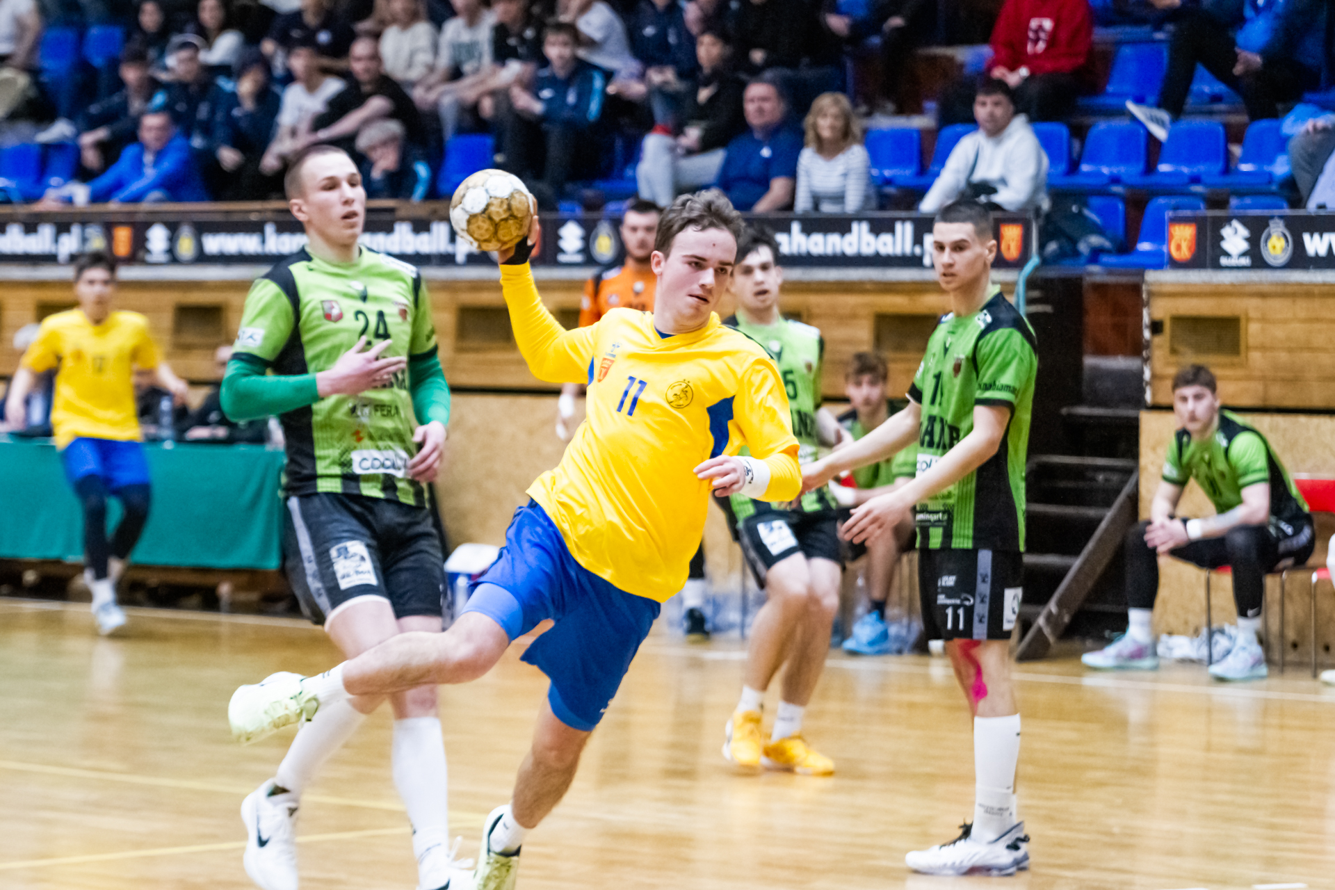 Pierwsze minuty spotkania z zawodnikami z Tarnowa pokazały, że nasza drużyna wyszła bardzo dobrze zmotywowana z szatni. Dwie pierwsze bramki dla naszego zespołu padły z rąk Jakuba Janusa. W siódmej minucie prowadziliśmy już 6:2. Przeciwnicy jednak szybko odrobili straty (7:6 w 12 minucie). Nasza gra mogła się bardzo podobać kibicom, którzy ponownie licznie się zgromadzili na trybunach. Młodsi zawodnicy Iskry wspierali starszych kolegów głośno dopingując przy akompaniamencie bębnów i trąbek, a także okrzyków członków rodzin i przyjaciół – po prostu wiernych kibiców żółto-biało-niebieskich, którzy w ten weekend postanowili zawitać na halę przy ul. Krakowskiej. Kulminacyjny moment meczu przyszedł w 22 minucie, kiedy to odskoczyliśmy na kilka oczek po udanych wykończeniach akcji rzutowych Marcela Latosińskiego, Janka Marca, Kuby Osucha i Kacpra Radka. Druga odsłona to konsekwentne powiększanie naszej przewagi, która na koniec spotkania dobrnęła aż do 8 bramek. Tarnowianie tego dnia musieli uznać wyższość naszych juniorów, dla których było to już drugie zwycięstwo w turnieju. Niestety na radość z awansu było jeszcze za wcześnie ponieważ w drugim pojedynku oławianie pokonali płocczan 36:28 (16:11) i o tym, kto awansuje do kolejnej rundy Mistrzostw zadecydować miały niedzielne spotkania.